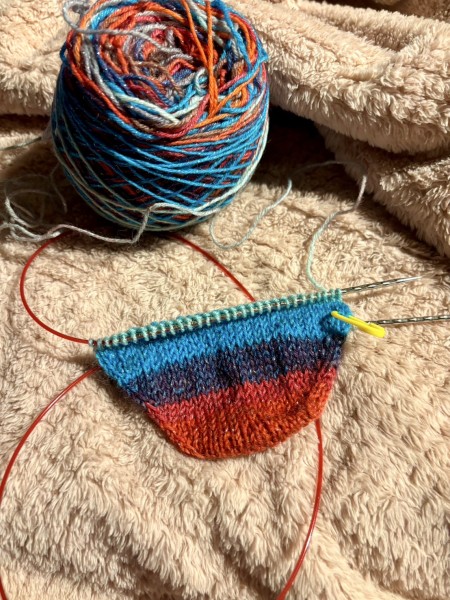 かかとの分残すの忘れて超長足になって編み直してたら時間かかった(›´-`‹ )