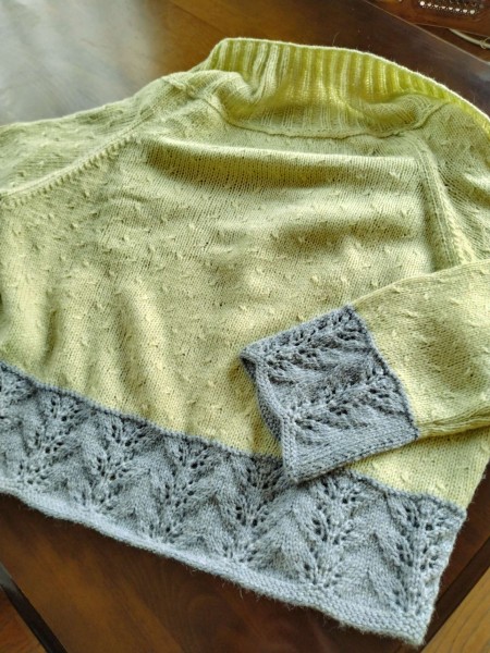 ゲージがレシピと違ったので目数を調整しながら編みましたが、アイロンをかけたらかなり滑らかになり、サイズも少しゆったりしました。