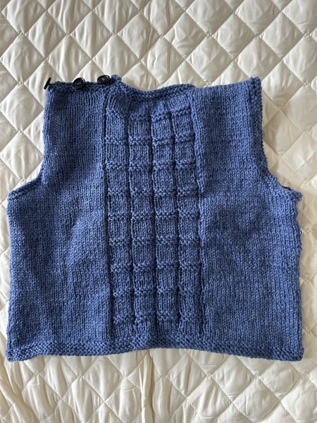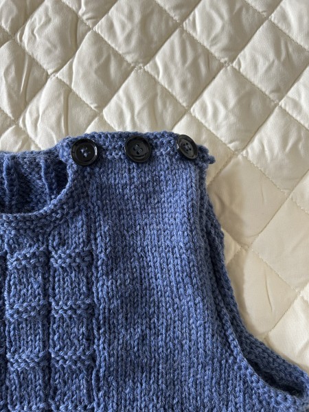 ボタンをつける部分はガーター編みの縁編みのところを工夫する必要があったり、編み方も左右対称ではなかったり、ボタンホールのバランスなど、ボタンなしのバージョンよりも少し難しかったです。