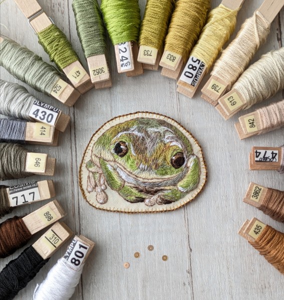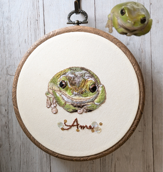 犬猫以外の刺繍は初めてでしたが、とても楽しく、カエルの魅力を初めて知りました。
