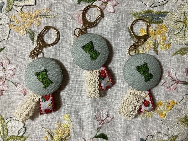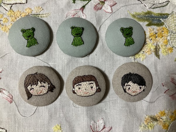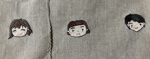 その時の思い出をかわいいイラストにしてくれたので刺繍してチャームに仕立てました
