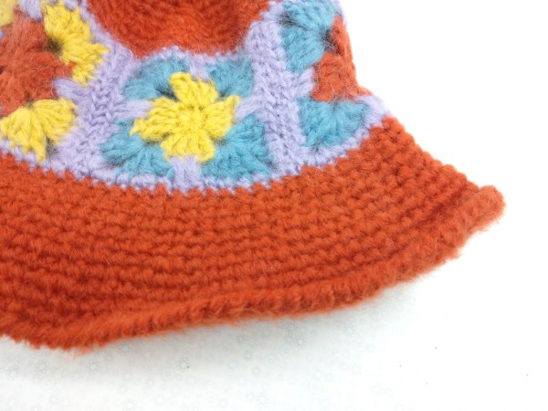 トップとブリムをモヘアを6本どりに増やしてしっかり目の細編みして帽子を編んでみました!