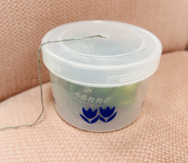夏糸は糸玉が崩れやすいので、即席ヤーンホルダーを手作りしました。