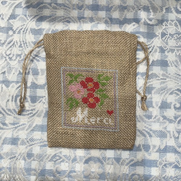 いつもは3本どりなので、2本どりで小さめの巾着に刺繍してみました。