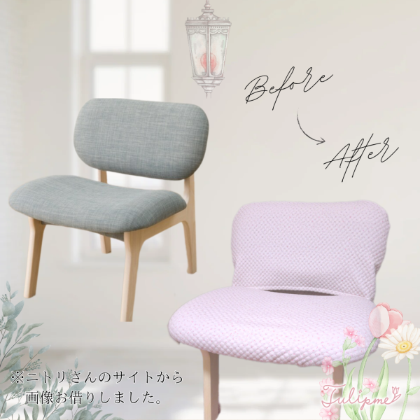 | チェアカバーを作りました。 サイズは現物の椅子に合わせてざっくり作っていきました。 なんとか布が足りて良かった! 好みの色柄にチェンジできて嬉しいです♪ 商品はニトリのこたつチェアです。 |