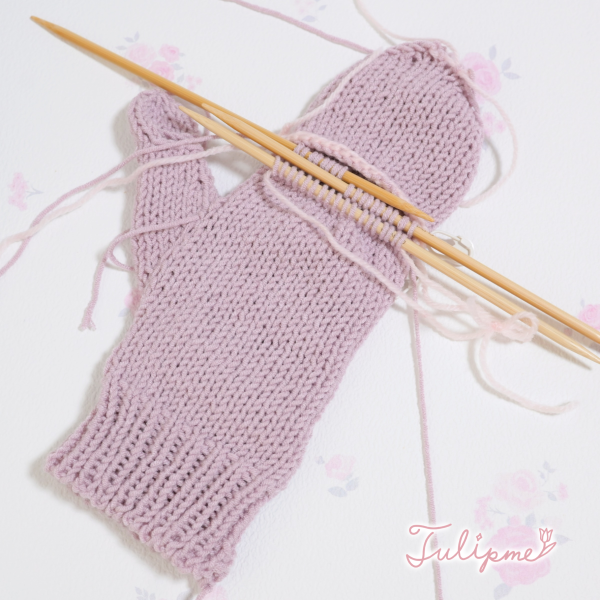 カバーに差し掛かる際、甲側は続けて模様編みをしますが、