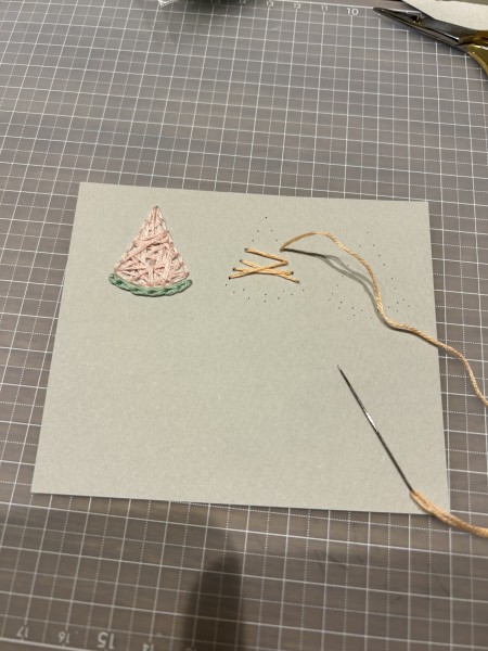 こんな色のスイカがあったら面白いなと思いながら刺しました。