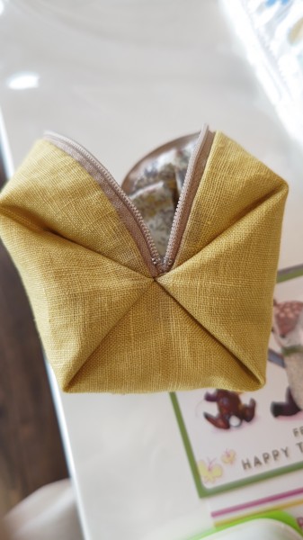 キャラメル包みのポーチ。