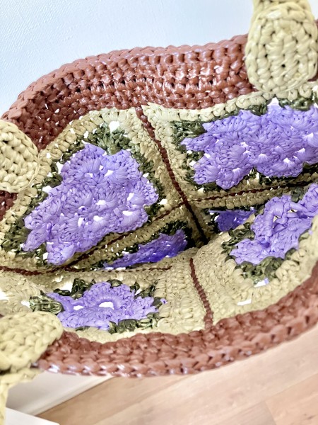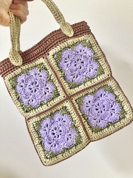 ビニールテープで編んだ薔薇のモチーフのバッグです。