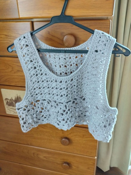 袖ぐりと襟ぐりをつけたところで糸がなくなりました。