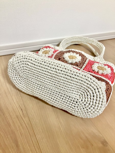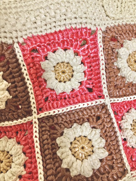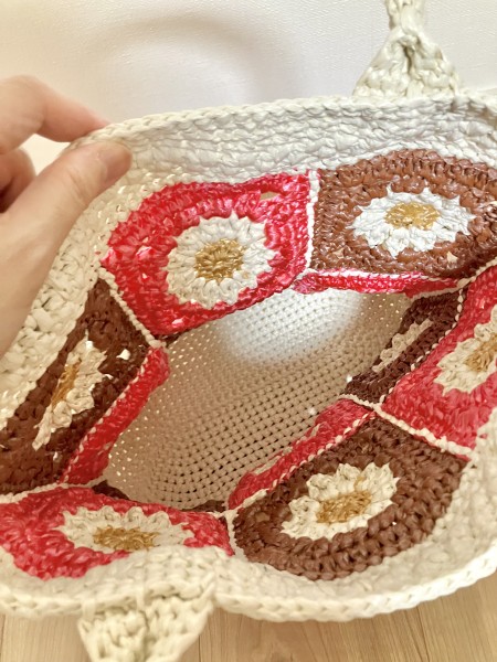 ビニールテープのモチーフ網をつなげて作ったバッグです。