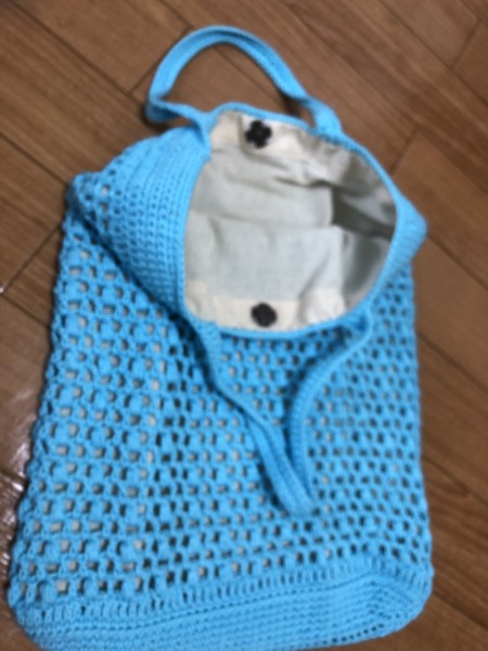 夏らしい明るいトルコブルーの、手提げバッグです。