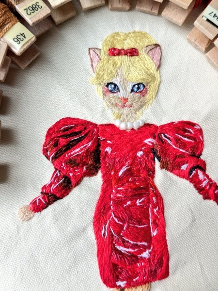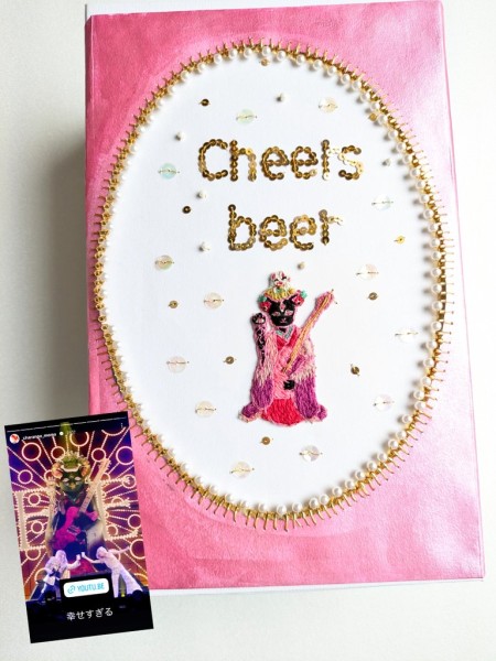 | 推しの写真を猫化したファンアート刺繍。 メインの刺繍キーホルダーを作った後額装に迷い、白い箱にラメ絵の具で色を塗り、紙刺繍でスパンコールやビーズを飾り立体的な舞台に。 紙刺繍でライブ時のネオンサインのイメージのビーズを飾りました。 ライブや紅白の舞台でも印象的だった黒猫も刺繍。 2枚目写真左の作品は、刺繍が趣味の推し活友達が作成したもので、今回のイベントに向けてプレゼント用に刺繍したものです。 先日のイベント時にこの友人が当てた神席でライブを観たあと、ご本人が個室に降臨、写真撮影とお話しする機会があり、本人に直接プレゼントとしてお渡しする事ができました。とても喜んで貰えました。(投稿許可いただきました) |
