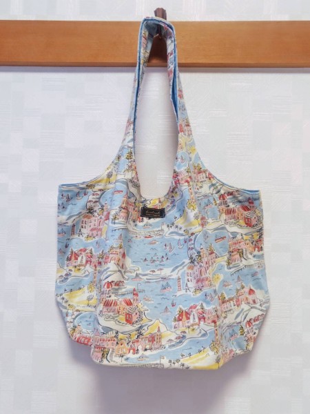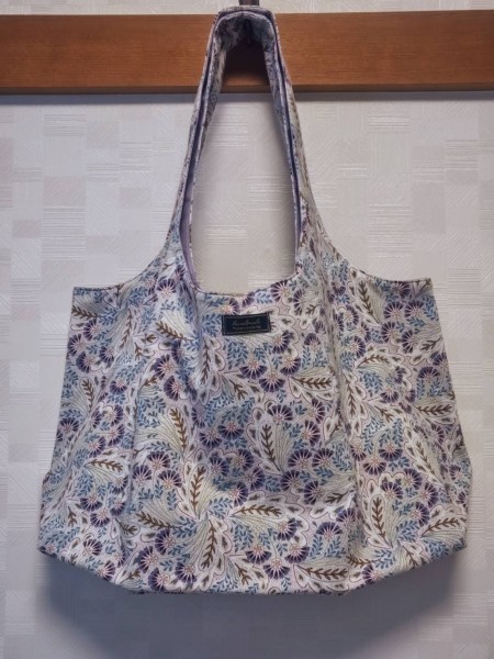 持ち手の幅が広く、肩掛けしやすい。横長で物が入れやすいと思いました。