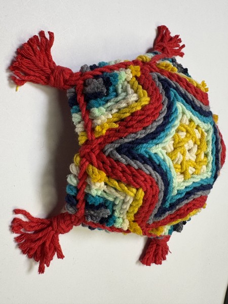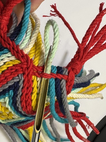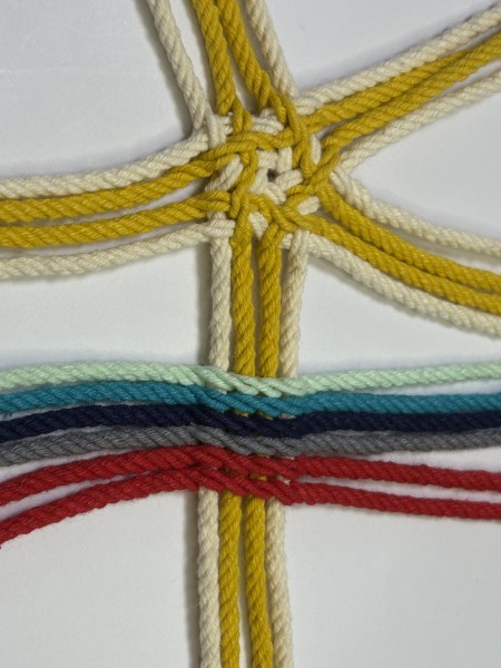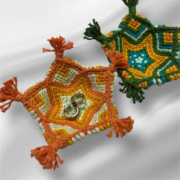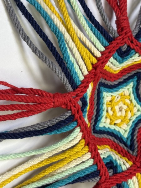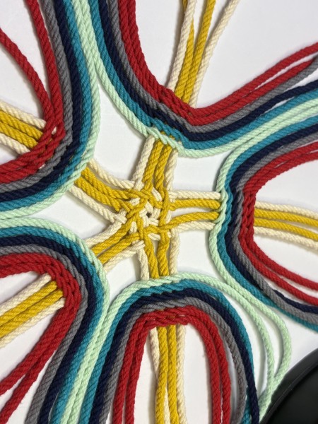 | 短い時間で作れるプライスプリットのミニバスケット。 ピアスとか置くのに、お部屋のアクセントにも。 コットンコードの色の組み合わせが楽しい。 |