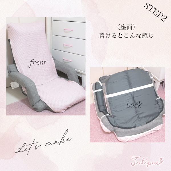 背もたれを倒すと布がパツパツになりそうだったので、座面と背もたれはあえて分けてみました。
