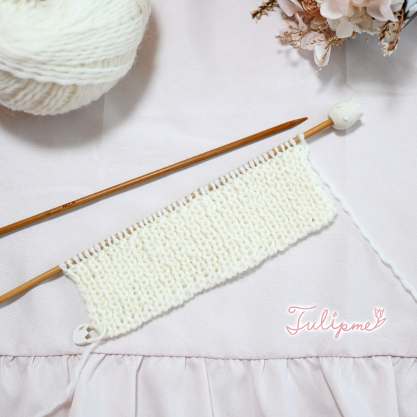 ゴム編みと表編みを1段ごと交互に編んでいます。