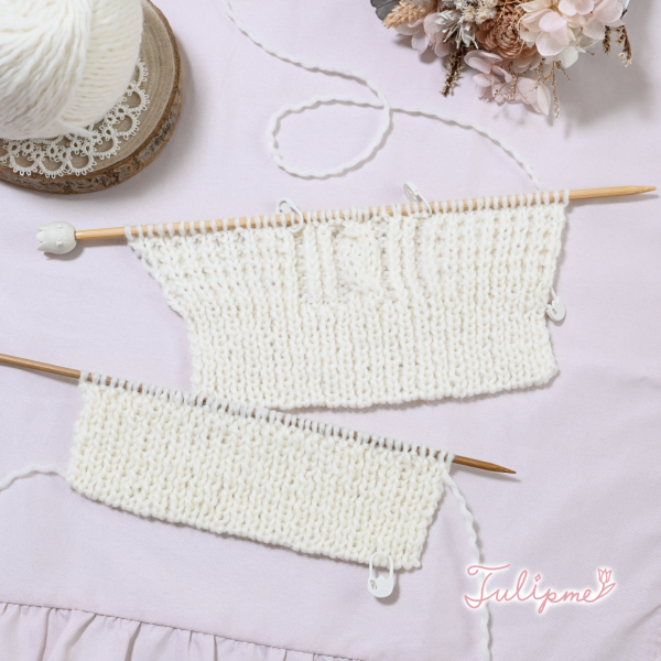 ぱっと見はゴム編みにしか見えなくてちょっと心配。