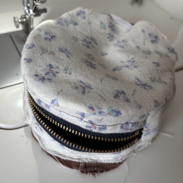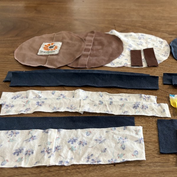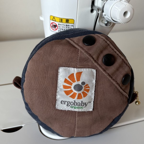 いつかリメイクしようと取っておいた抱っこ紐と、肌着を使って、コロンとしたポーチを作りました。