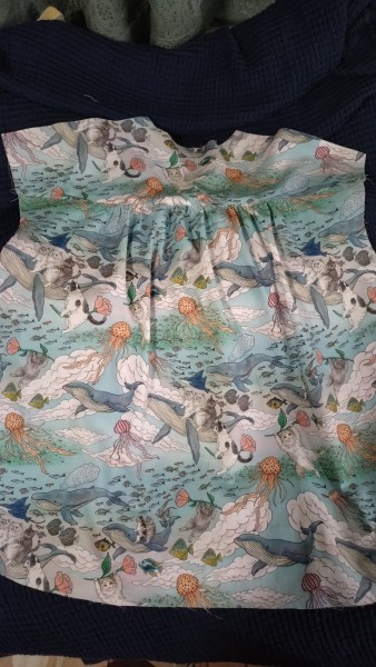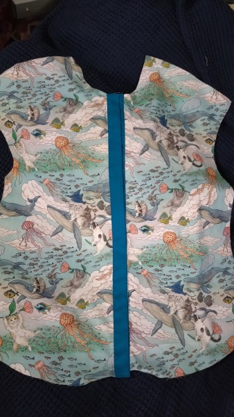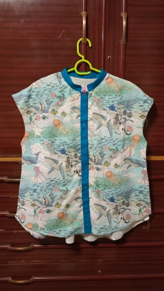 前身頃は、本当は柄合わせをしたかったけれど、どう頑張ってもできなかったので、見返しの部分をわざと濃い色にして柄を一旦切ってしまおうという作戦。吉と出るか凶と出るか。