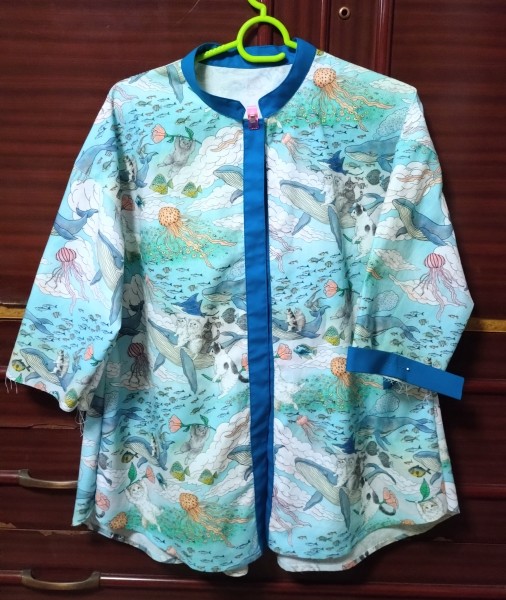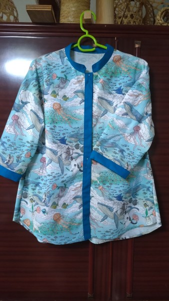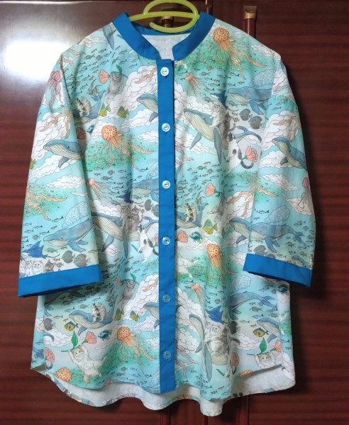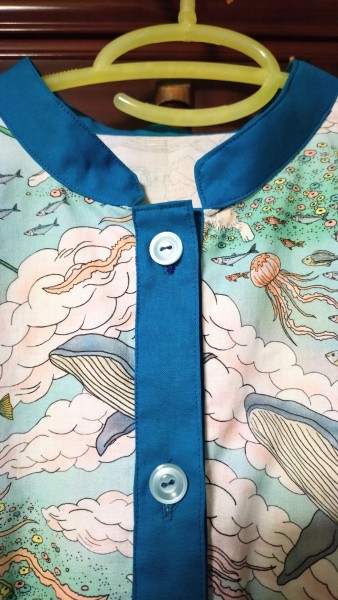 襟の曲線とボタンホールをちょっと失敗したけど、完成!