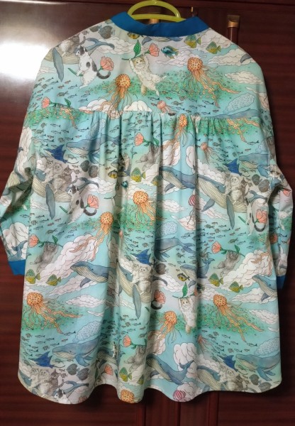 | coccaさんの超絶可愛い布に一目惚れして、賑やかで可愛い系のブラウスを。 型紙は、すてきにハンドメイドの型紙をアレンジしたもの。 |