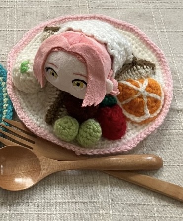 バナナを添えたアクアプレートとシャインマスカットを盛り付けたピンクプレートの2種類を作りました。