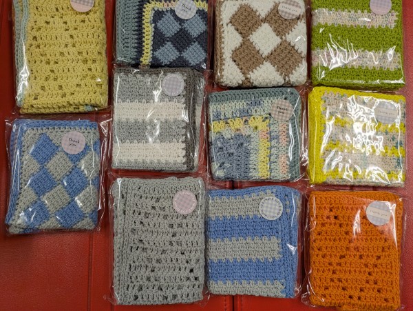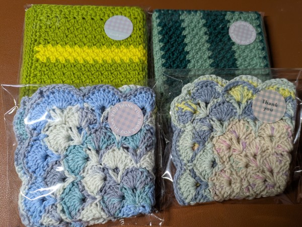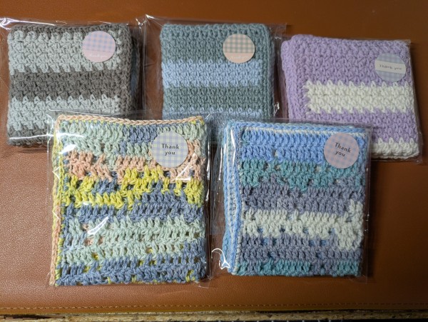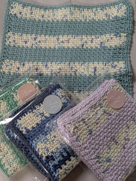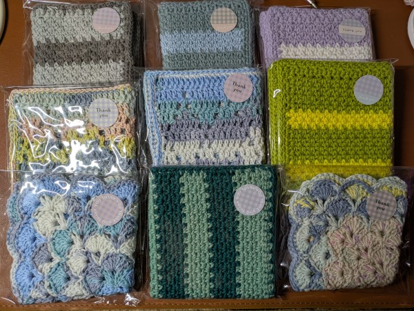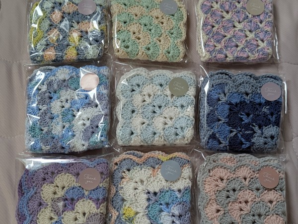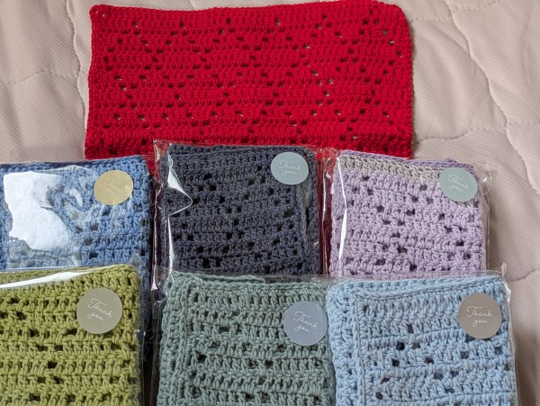 | ハンカチ 任期満了で退職する職場の、お世話になった皆さんに、記念に渡すハンカチを編んでいます 現在27枚 最終出勤日の8/22までに 50枚目標 最終出勤日を過ぎてしまいましたが、出張や有休の方分のハンカチも完成しました 明日仲良しさんに託すことになりました |
