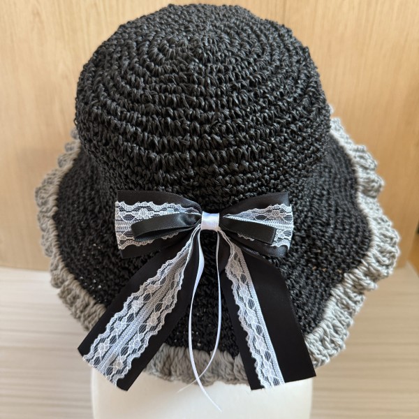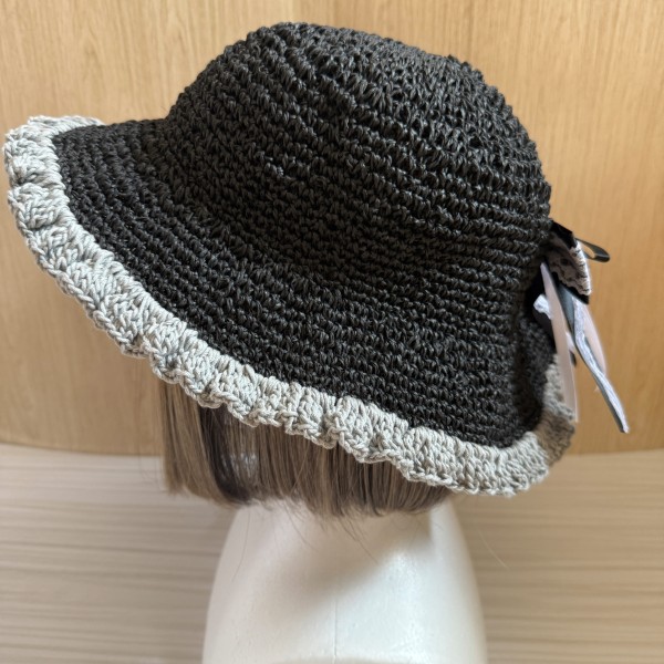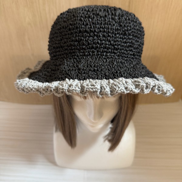 | 夏にぴったりな麦わら帽子を編んでみました。 黒色の服や地雷系ファッションに似合うような帽子を作りたいと思い、黒とグレーの組み合わせにしてみました。 ペーパーヤーンが物凄く硬くて苦労しましたが通気性が良く丈夫な素材なので黒色でも暑くないのが良い点だなと思います! 参考:しずかなひとりごと様 |
