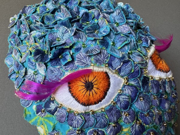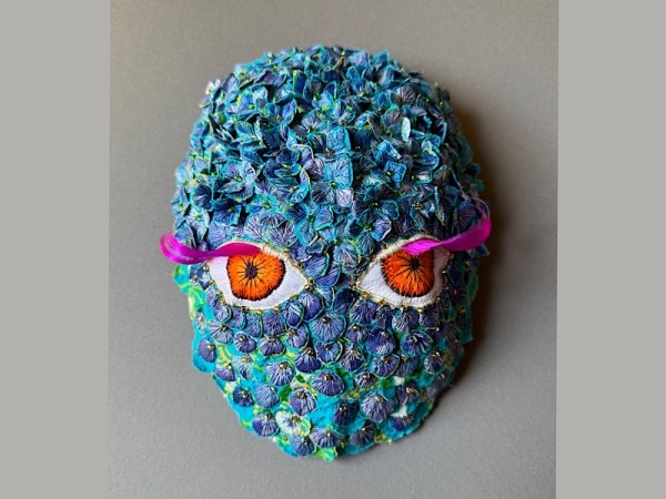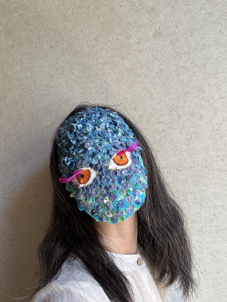 幡ヶ谷仮面展に展示する仮面を立体刺繍で作りました。