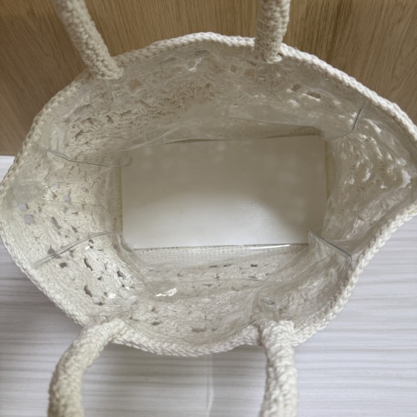 市販のビニールバッグに編み地を被せた形になっています。