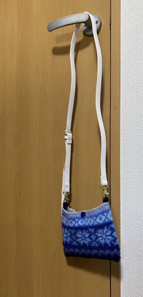 | サコッシュの持ち手が届いたので完成しました! イベントのときの釣り銭入れにしたいなと思って、自分用に好きな色で編みました。 イメージはおそ松さんのカラ松カラーです。 なので、くすんだ色ではなくハッキリした色の糸を選びました。 11種類の青を使っています。 マグネットボタンの金具を隠すためにダーニングをしましたが、不器用なのでうまくいきませんでした……今後の課題です。 |