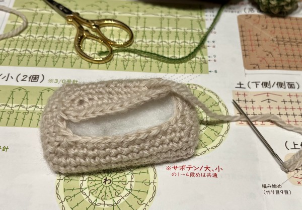 土が完成したので、あとはここにサボテンたちを縫いつけます