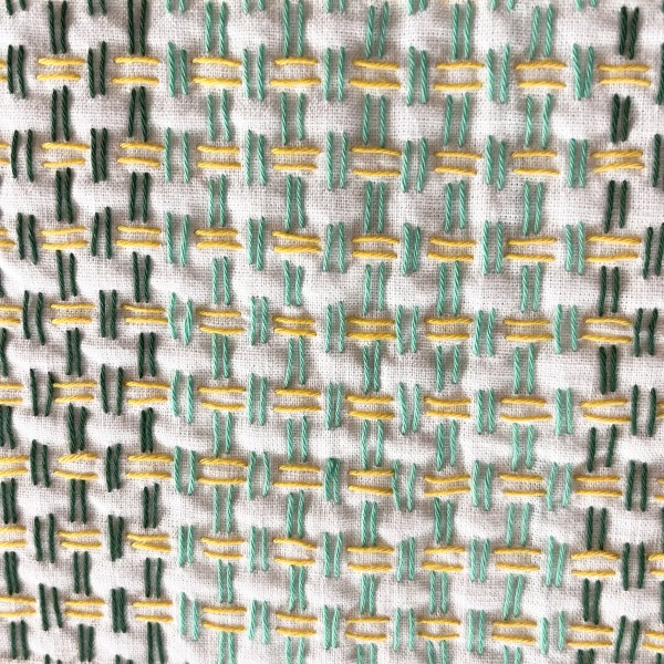 綿麻クロスに彩りを施す一目刺しの大判ふきん