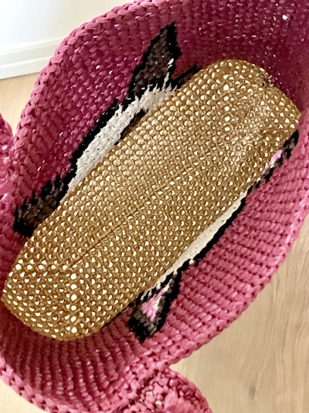 ビニールテープでシャム猫の柄のバッグを編みました。