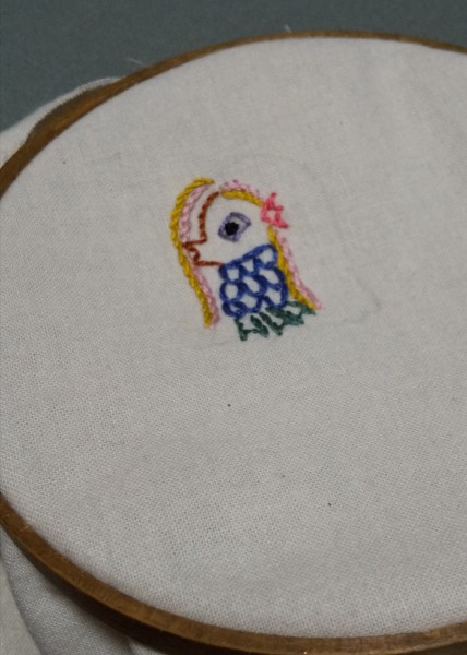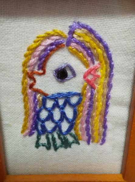 疫病退散を願って、アマビエ様の刺繍をしました。