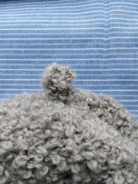ひつじのイメージ糸なのに、フクロウの子供みたいな帽子に、、、