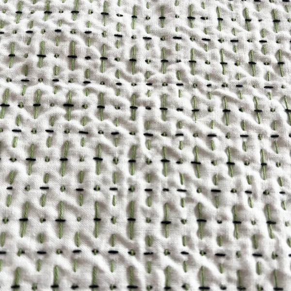 綿麻クロスに彩りを施す一目刺しの大判ふきん