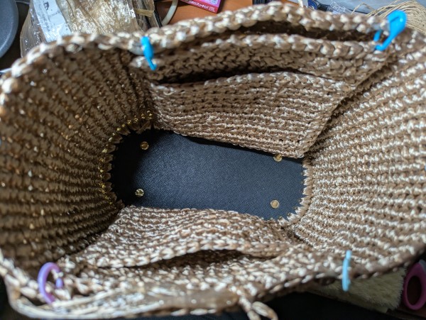 本体30段編んで、取手とマグネットホックを付ける所に、