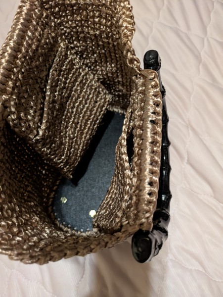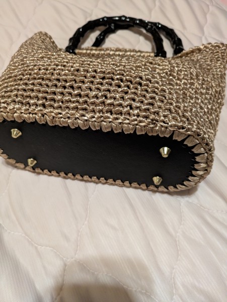 | エコアンダリヤのバッグ 細編みを斜行しないで編むのを目標に練習しています 細編みのコツをこのバッグで掴めた気がします |