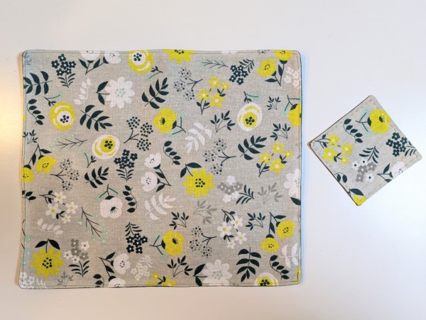 | 100均でオシャレな手ぬぐいを見つけてリメイクしました。コースターは手縫いで、ランチョンマットはミシンで仕上げました。表地が花柄・裏地が緑で各2枚作製。コースターの手縫いの縫い目が気に入っています。接着芯を貼ったのでパリッとした仕上がりになりました。ランチョンマットは少々裏地(緑の生地)を大きく裁断してしまい、布がだぶついてしまいました。コースターがメインで、ランチョンマットは余った表地を真っ二つに切り、縦の長さだけを好みのサイズに切って整えたので、一般的なサイズではないと思います。やっつけ仕事です。裏地は手芸屋さんで売っている50×50等のカットクロスを2枚使用。(裏地の方が高額(笑)リ、リバーシブルということで。) | |