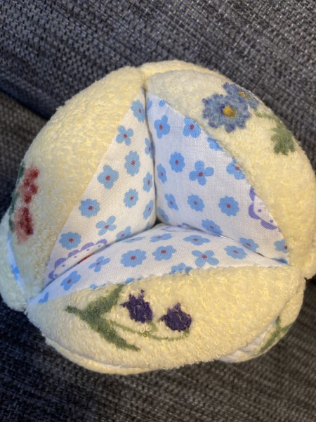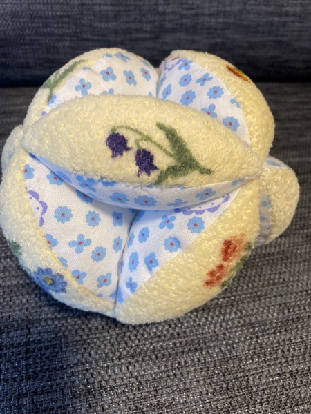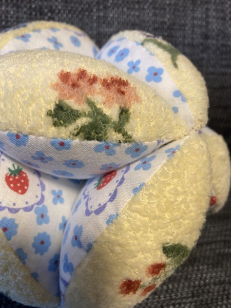 中にはプラスチックの鈴が入っているので、手や足で触れるとかわいい音が鳴ります。