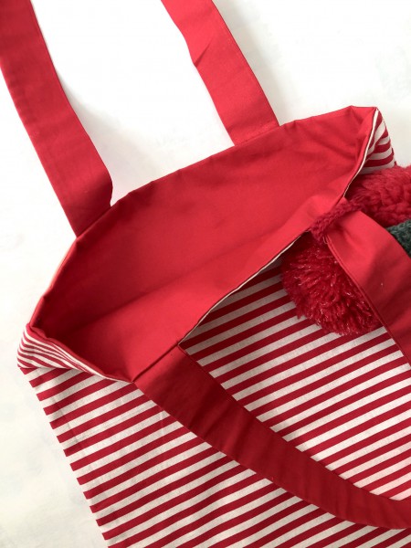 赤の2種類のあまり毛糸でポンポンを作りそれに合うトートバッグを作りました。ソーイングと呼ぶには未熟ですが、私の中ではリバーシブルで使えるリンゴトートです。2020は、ソーイングを頑張る予定です!