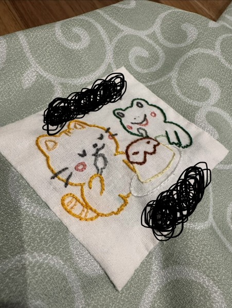 娘のパジャマ風呂敷に刺繍しました!