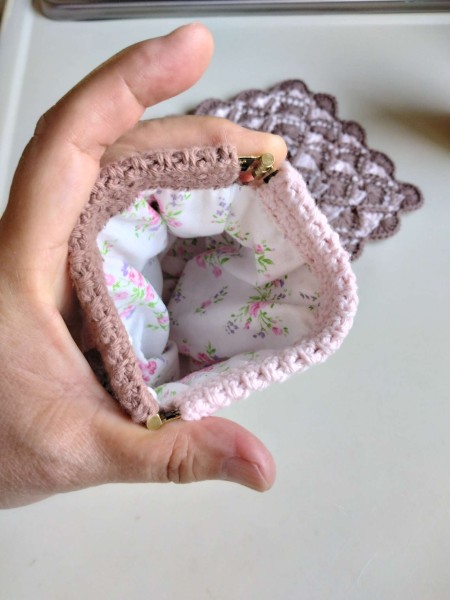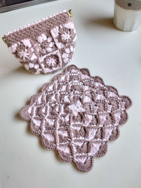 バネ口金の小物入れとミニドイリーです。小物入れは裏地付きです。