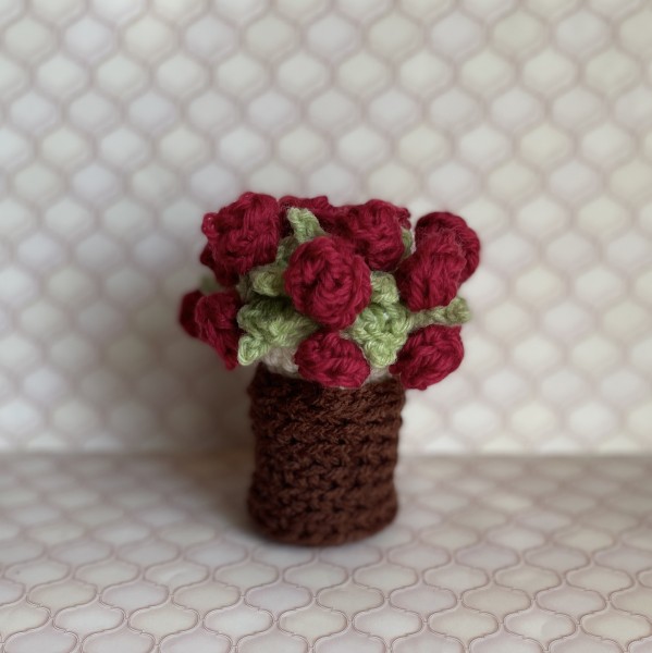 | バラをモチーフにしたかぎ針編みのコースターです 縁に小さな花をあしらって、上から見るとまるで花束のように。 テーブルの上が少し明るくなるお気に入りの作品です |