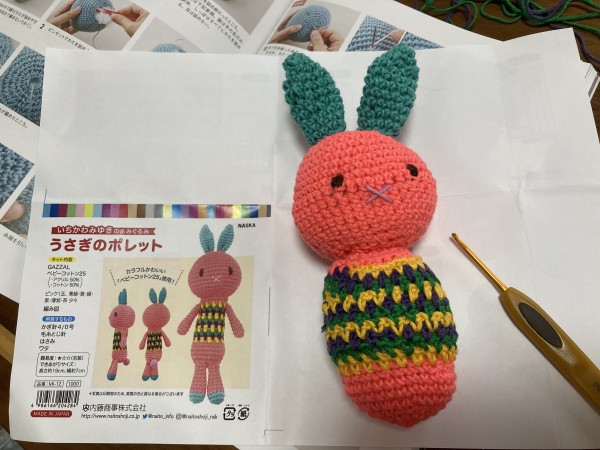 | いちかわみゆきさんの、編みぐるみキットより 「うさぎのポレット」ちゃん 配色がステキ 難易度:初級 |