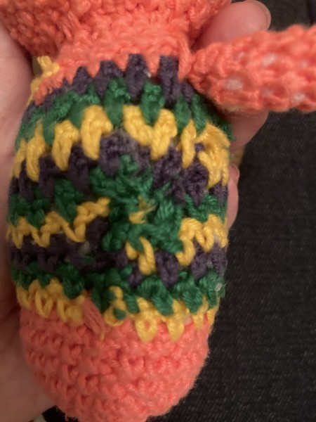 綿詰めすぎたかな?編み間から綿がこんにちはしている…