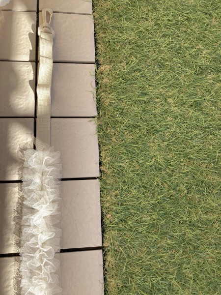 | その他材料 | DAISO フリルチュールテープ 1本本、Seria ナスカンつきショルダーストラップ120cm |