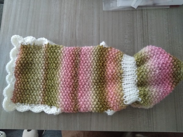 桜餅カラーのグラデーションが、可愛いので、模様は入れずに編みました。